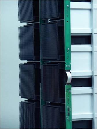 Product highlights: Extremely robust Heavy duty proof Long-time proven for mission-critical application Simple and functional construction Aluminum Chassis Cost effective Magazine system Ergonomic design 35-Slot, fist-sized, lockable, interchangeable Suitable for off-line media management Double RFID tags for offline/nearline indexing Mailslot Single media exchange Standard drives used State-of-the-art DVD/BD drives No modification on drives Direct SATA interface ready (no bridges needed) Easy and inexpensive upgrade No maintenance problem during the product lifetime Integrated media printer HP Inkjet technology High quality Low cost On-demand media labeling Self-learning Automatic magazine adaptation Auto calibration of the robotics Interchangeability of nearline and offline magazines Mechanical construction